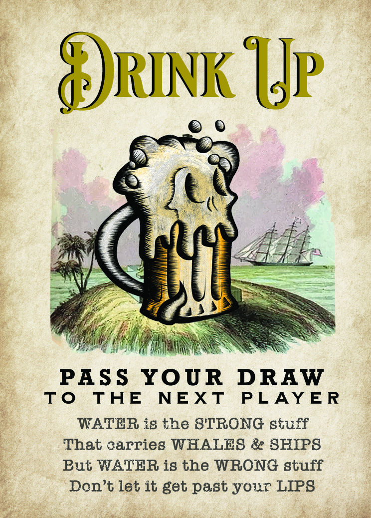 It's time to buy a round! Let the next player draw, and you stay in the game. Discard after Playing.TIP: Save your drink up cards for when the game gets dangerous - when the draw pile gets small!